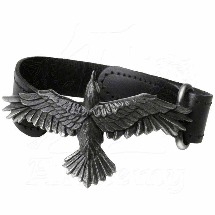 Stylish bracelet made of English pewter (pewter), and genuine leather. The bracelet is optimized for wrist with a diameter of approx .: 14-19 cm. Fastening is done with Velcro. The width of the bracelet (leather) approx .: 1.5 cm. Brand ALCHEMY GOTHIC.