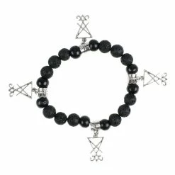 Stylish bracelet, by LUCIFEROTHICA. Composition: metal, PVC beads, elastic rubber. The bracelet has a universal size, thanks to the inner elastic string.