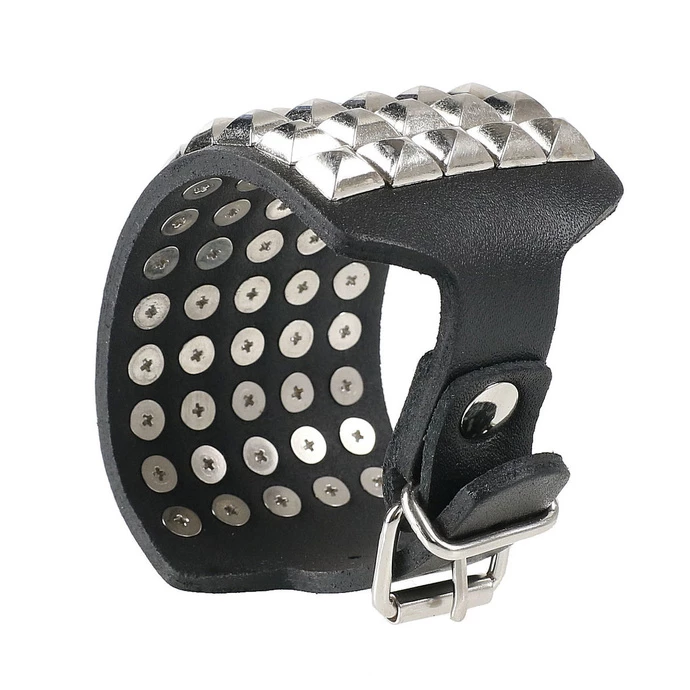 Stylish leather bracelet. Composition: genuine leather, metal accessories. For max. wrist circ. 23.5 cm. Total bracelet length approx .: 26.5 cm.Bracelet width approx .: 5.5 cm. The producer uses several types of buckles and other metal accessories for this type of bracelet, thus they may slightly differ, mainly by the color shade used.