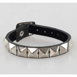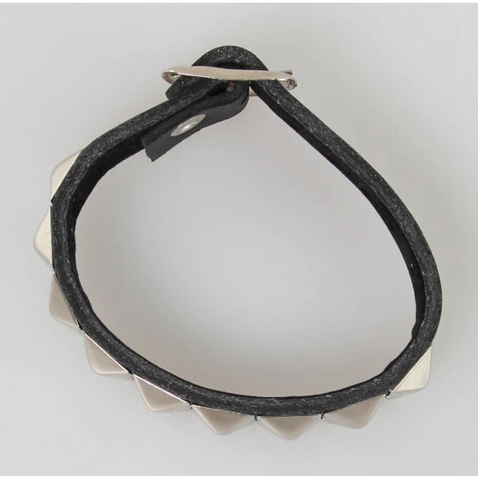 A series of pyramid bracelet přezkovým opening – 7 positions. -Material leather, silver metal pyramid. Height pyramidek approx. 0.5 cm. Bracelet Width: 2.2 cm. For wrist approx. 14-21,5 cm.