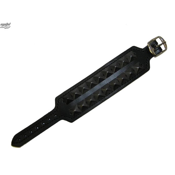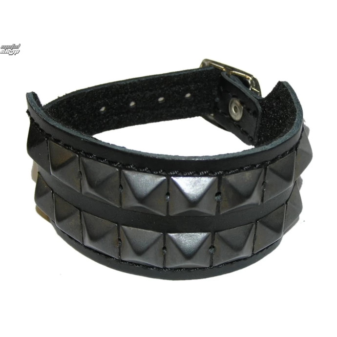 2 row pyramid bracelet přezkovým opening – 7 positions. -Material leather, black metal pyramid. Height pyramidek approx. 1 cm. Bracelet Width: 3.8 cm. For wrist approx. 16-22 cm.