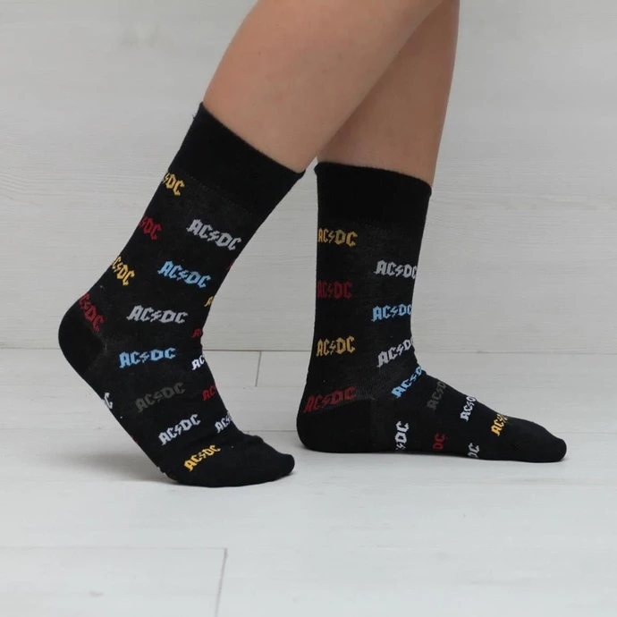 Stylish AC/DC socks. One pair of the socks is in a package. Composition: 86% cotton, 12% polyamide, 2% elastane.